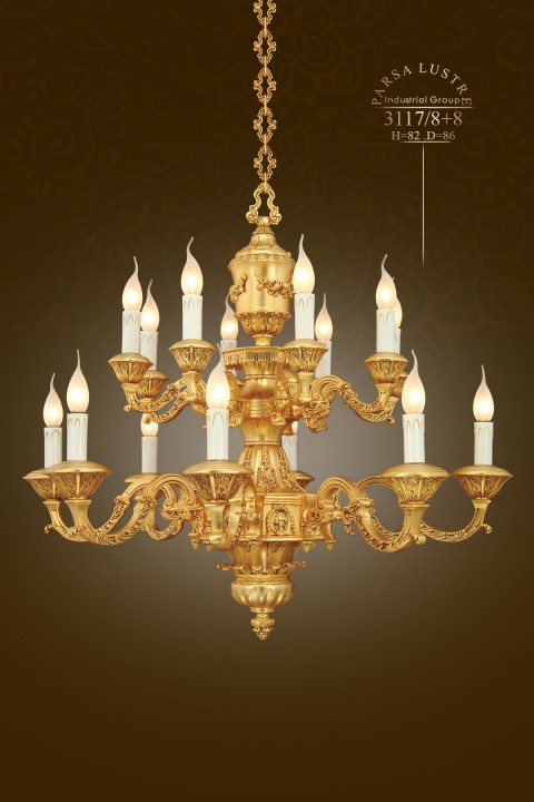 Đèn chùm 3117/8+8 có 16 bóng đèn được chia thành 02 tầng