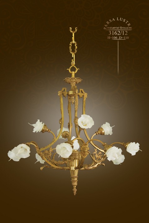 Đèn chùm 3162/12 có 12 bóng đèn. Kết hợp tinh tế với chóa đèn bằng thủy tinh cao cấp Iran