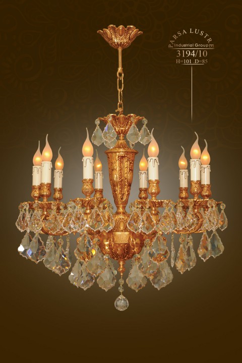 Đèn chùm 3194/10 có 10 bóng đèn. Kết hợp với Pha lê hãng ASFOUR (Ai Cập)