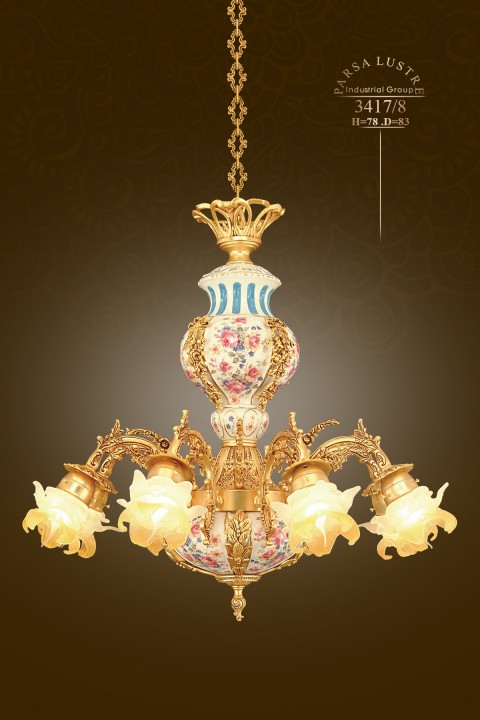 Đèn chùm 3417/8 có 8 bóng đèn. Kết hợp với những chóa đèn bằng Thủy tinh của Iran