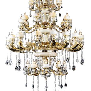 Đèn Chùm Đồng Đá HT720/24 Mạ Vàng 24k