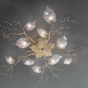 Chiếc đèn tinh tế với từng viên pha lê đều được thổi thủ công dưới sự sáng tạo, khéo léo và tỉ mỉ của người thợ. Đây là một tác phẩm nghệ thuật lấy cảm hứng từ thiên nhiên, độc đáo và tinh xảo, nhưng lại phù hợp với mọi không gian sống từ phong cách cổ điển đến hiện đại.