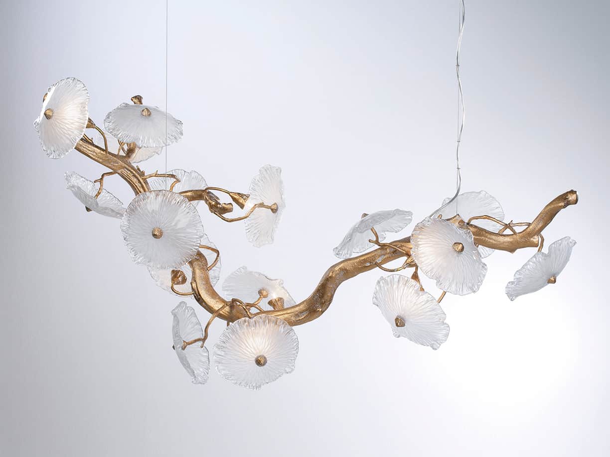 Chiếc đèn tinh tế với từng viên pha lê đều được thổi thủ công dưới sự sáng tạo, khéo léo và tỉ mỉ của người thợ. Đây là một tác phẩm nghệ thuật lấy cảm hứng từ thiên nhiên, độc đáo và tinh xảo, nhưng lại phù hợp với mọi không gian sống từ phong cách cổ điển đến hiện đại.