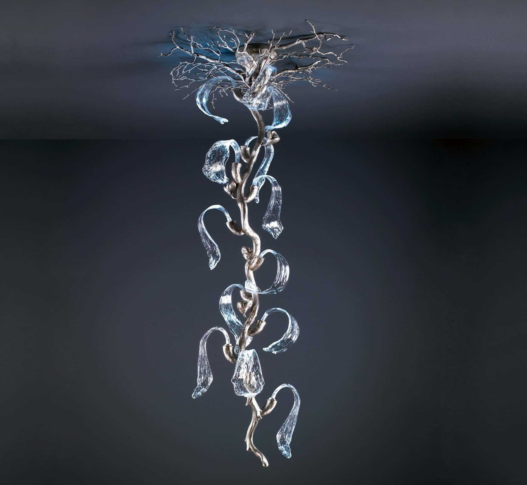 Chiếc đèn tinh tế với từng viên pha lê đều được thổi thủ công dưới sự sáng tạo, khéo léo và tỉ mỉ của người thợ. Đây là một tác phẩm nghệ thuật lấy cảm hứng từ thiên nhiên, độc đáo và tinh xảo, nhưng lại phù hợp với mọi không gian sống từ phong cách cổ điển đến hiện đại.