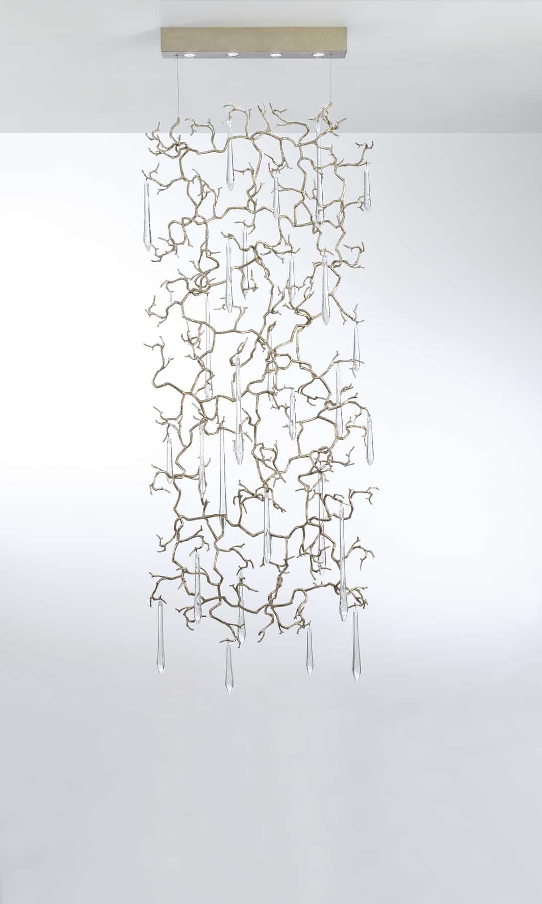 Chiếc đèn tinh tế với từng viên pha lê đều được thổi thủ công dưới sự sáng tạo, khéo léo và tỉ mỉ của người thợ. Đây là một tác phẩm nghệ thuật lấy cảm hứng từ thiên nhiên, độc đáo và tinh xảo, nhưng lại phù hợp với mọi không gian sống từ phong cách cổ điển đến hiện đại.